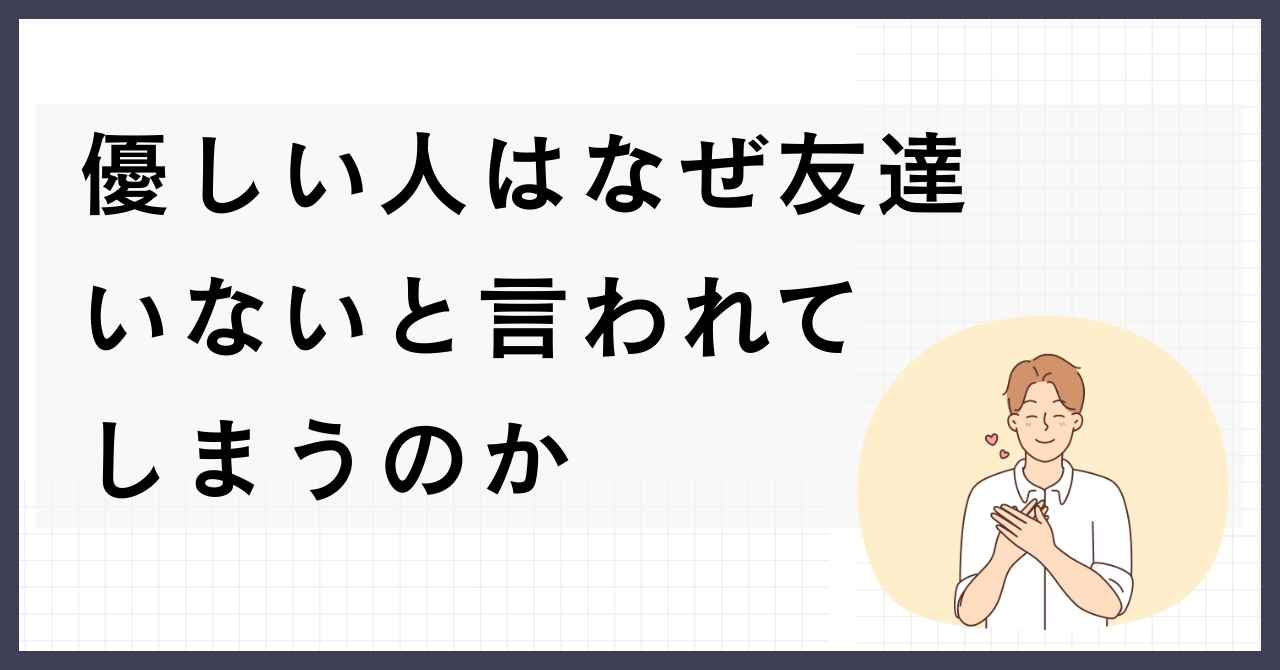 この記事では、優しい人 友達いないと言われる心理的な背景や誤解の正体をわかりやすく解説します。
