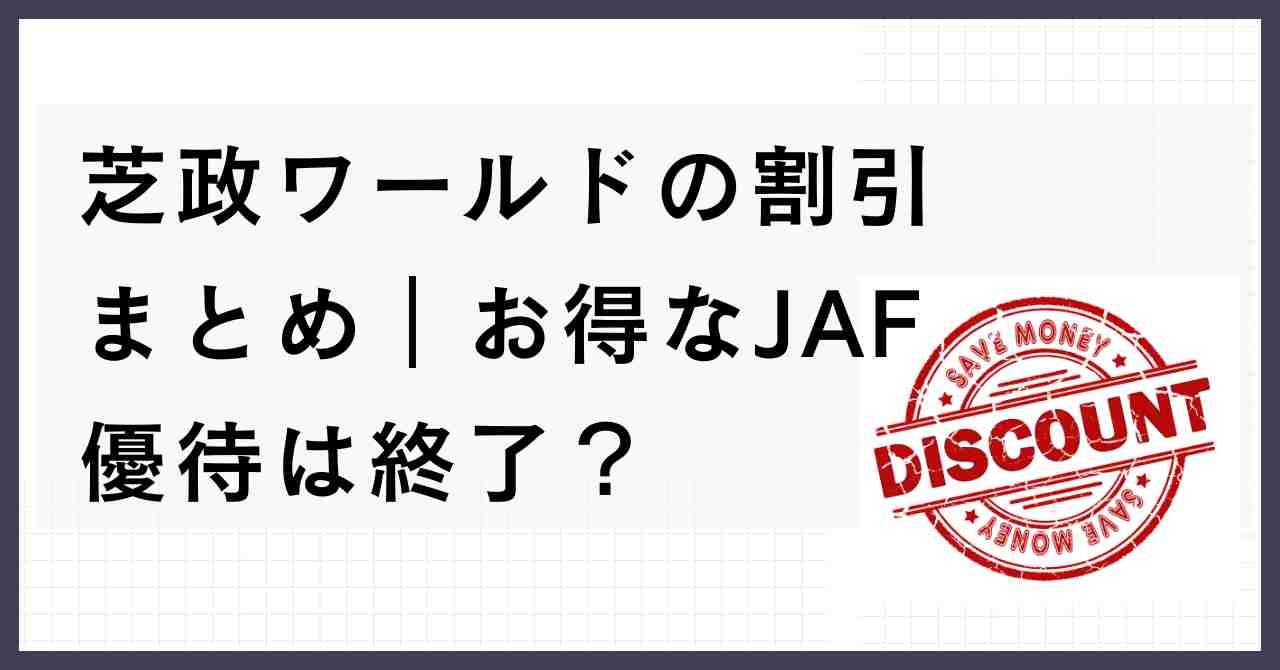 「芝政ワールドのチケット、JAF割引ってまだ使えるの?」と気になっていませんか。